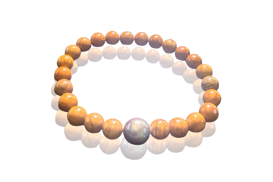Inspired by the earthy hues of sunlit sand and golden amber, the SandStone Bracelet is a celebration of natural beauty and balance. This elegant piece features 8 mm citrine stones in rich caramel-brown tones, paired with a 10 mm Edison-colored freshwater pearl, a stunning combination of warmth and sophistication.